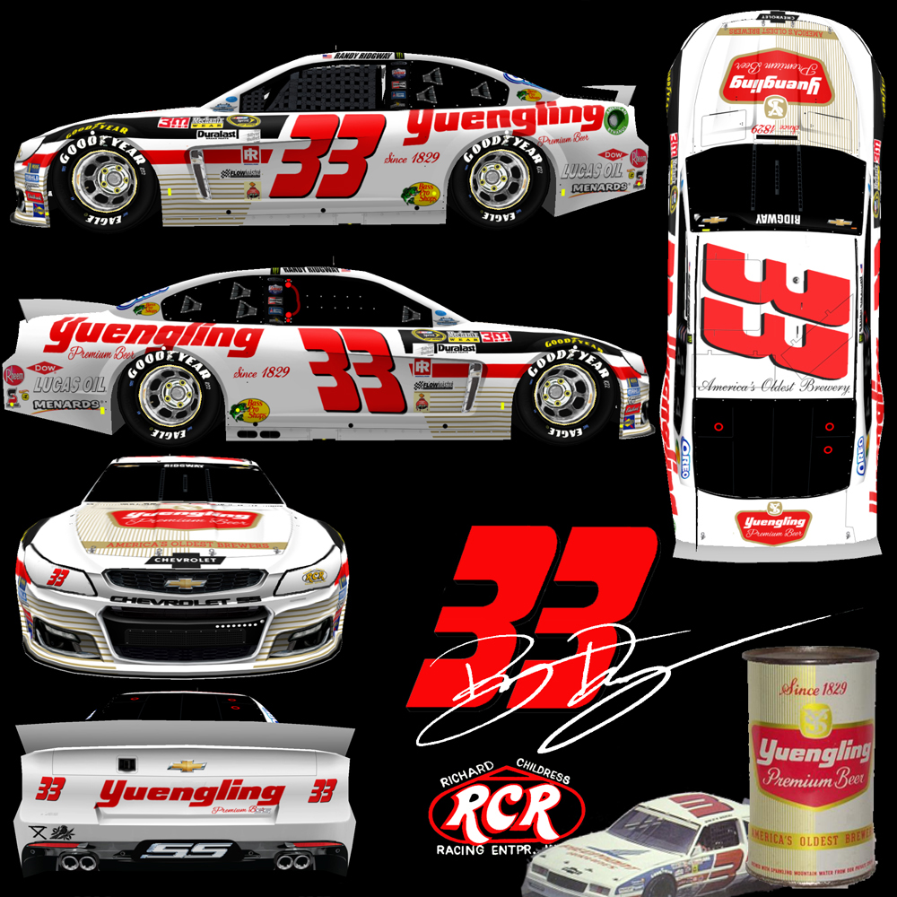 This is my throwback for an online league I run. I actually came up with this in APril before RCR announced the 3 and 31, but its cool that it fits with what they ultimately ran. Obviously this is based off of Ricky Rudd's 1983 Piedmont Airlines car he used to win at Riverside with, the first for RCR. This car is all me aside from logo help from Checker_mc, he made all the retro Yuengling logos from scratch for me. base, numbers, me. rest is from BER (template) SRD and google for logos, and contingincies. "Render" by me with car viewer and photoshop. I should add, the file included doesnt have my name on it (render does), so you can add any driver you'd like to it.