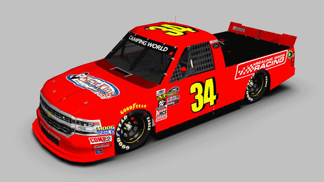 Jeffrey Abbey's #34 Chevy from the Eldora Dirt Derby. CREDITS: Template (BER), Numbers (me), Logos (Google, me) Render (TMS) Enjoy!