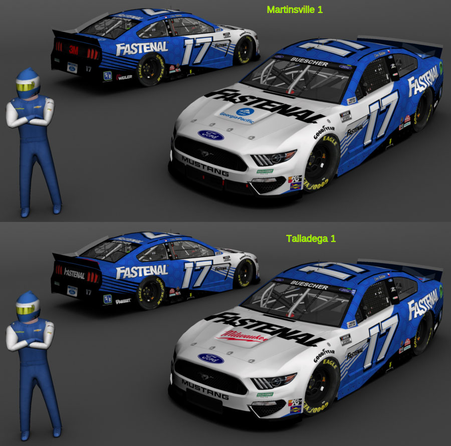 2021 #17 Chris Buescher Mustang from Martinsville 1 and Talladega 1. MENCS 2019 mod & template - Lefty template update...... #'s - BER...... B-pillar decals - Rick's 2021 B-Pillars and me...... Sponsor logos from various internet sites...... Pit crew - SteveZ ( modified )...... NRatings for driver rating...... Renders - The Mod Squad...... Screen Shot: