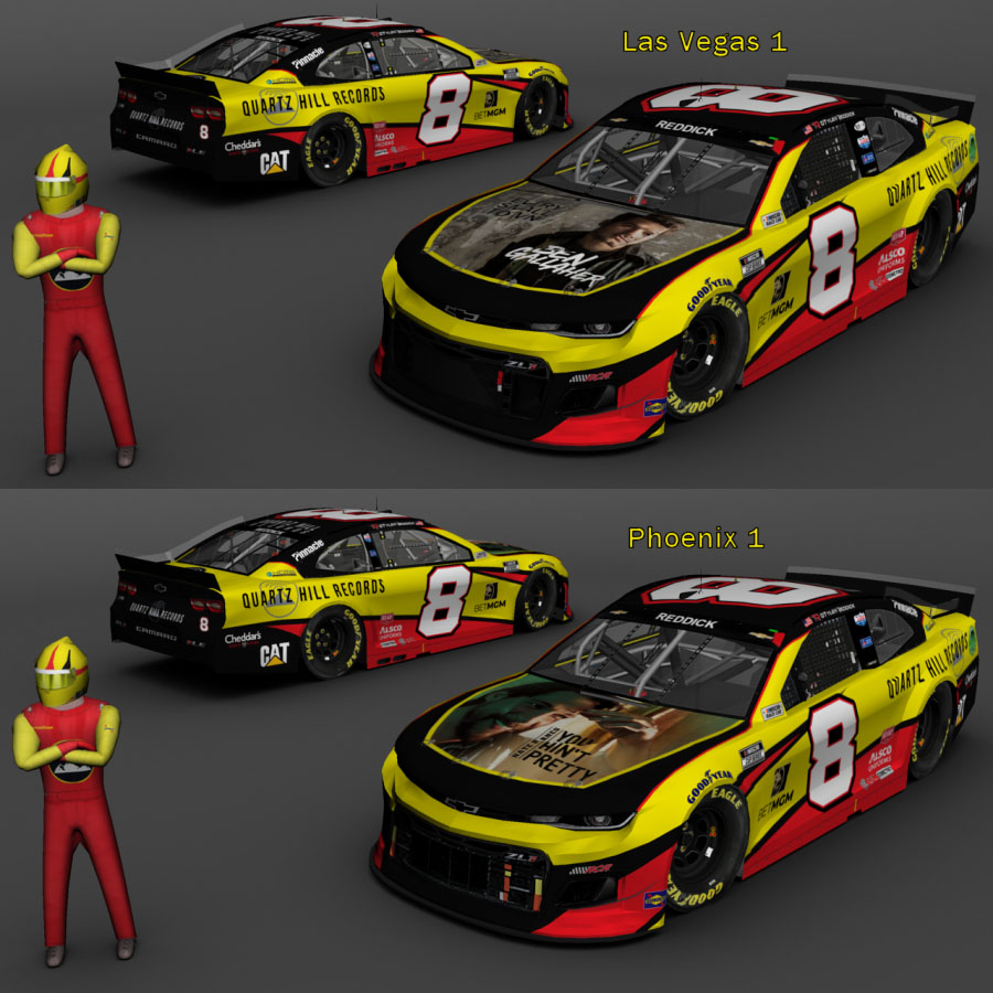 2021 #8 Tyler Reddick from Las Vegas 1 and Phoenix 1. MENCS 2019 mod & template - Splash n' Go with Lefty template update...... #'s - BER (modified) ...... B-pillar decals - Rick's 2021 B-Pillars ...... Sponsor logos from various internet sites/me...... NRatings for driver rating...... Render - The Mod Squad......