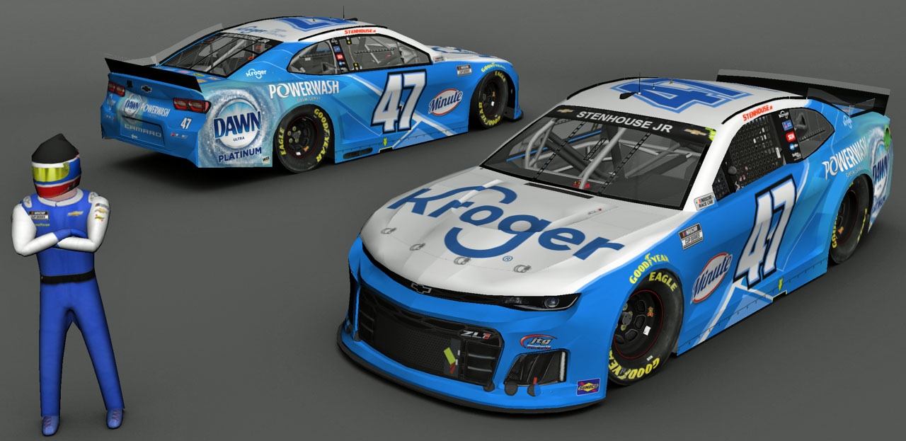 2021 #47 Ricky Stenhouse Jr Camaro from New Hampshire. MENCS 2019 mod & template - Lefty template update...... #'s - BER...... B-pillar decals - Rick's 2021 B-Pillars and me...... Sponsor logos from various internet sites/me...... Pit crew - SteveZ...... NRatings for driver rating...... Render - The Mod Squad......