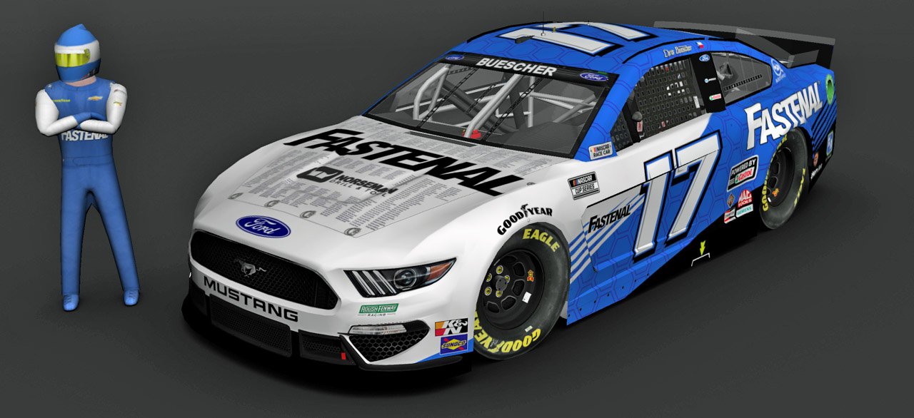 2021 #17 Chris Buescher Fastenal Mustang updated to Bristol 2. MENCS 2019 mod & template - Lefty template update...... #'s - BER...... B-pillar decals - Rick's 2021 B-Pillars/me...... Sponsor logos from various internet sites/me...... Pit crew - SteveZ ( modified )...... NRatings for driver rating...... Render - The Mod Squad......