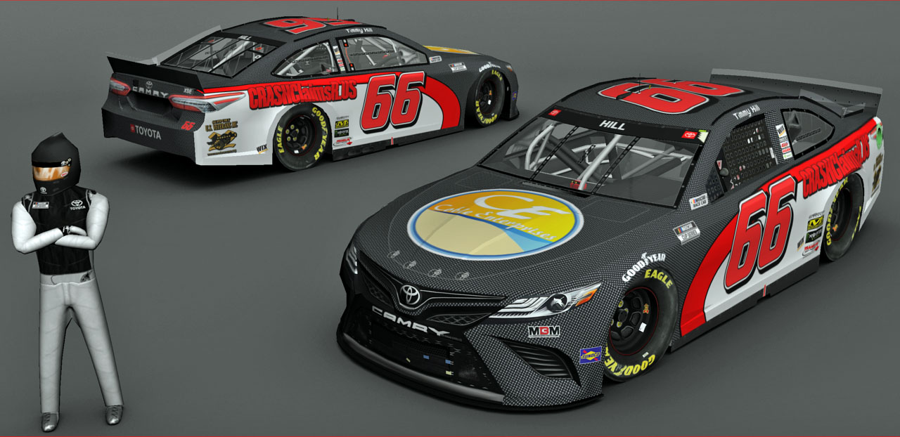 2021 #66 Timmy Hill from Charlotte Roval. MENCS 2019 mod & template - Splash n' Go with Lefty template update...... #'s - BER...... B-pillar decals - Rick's 2021 B-Pillars/me...... Sponsor logos from various internet sites/me...... Pit crew - SteveZ ( modified )...... NRatings for driver rating...... Render - The Mod Squad......